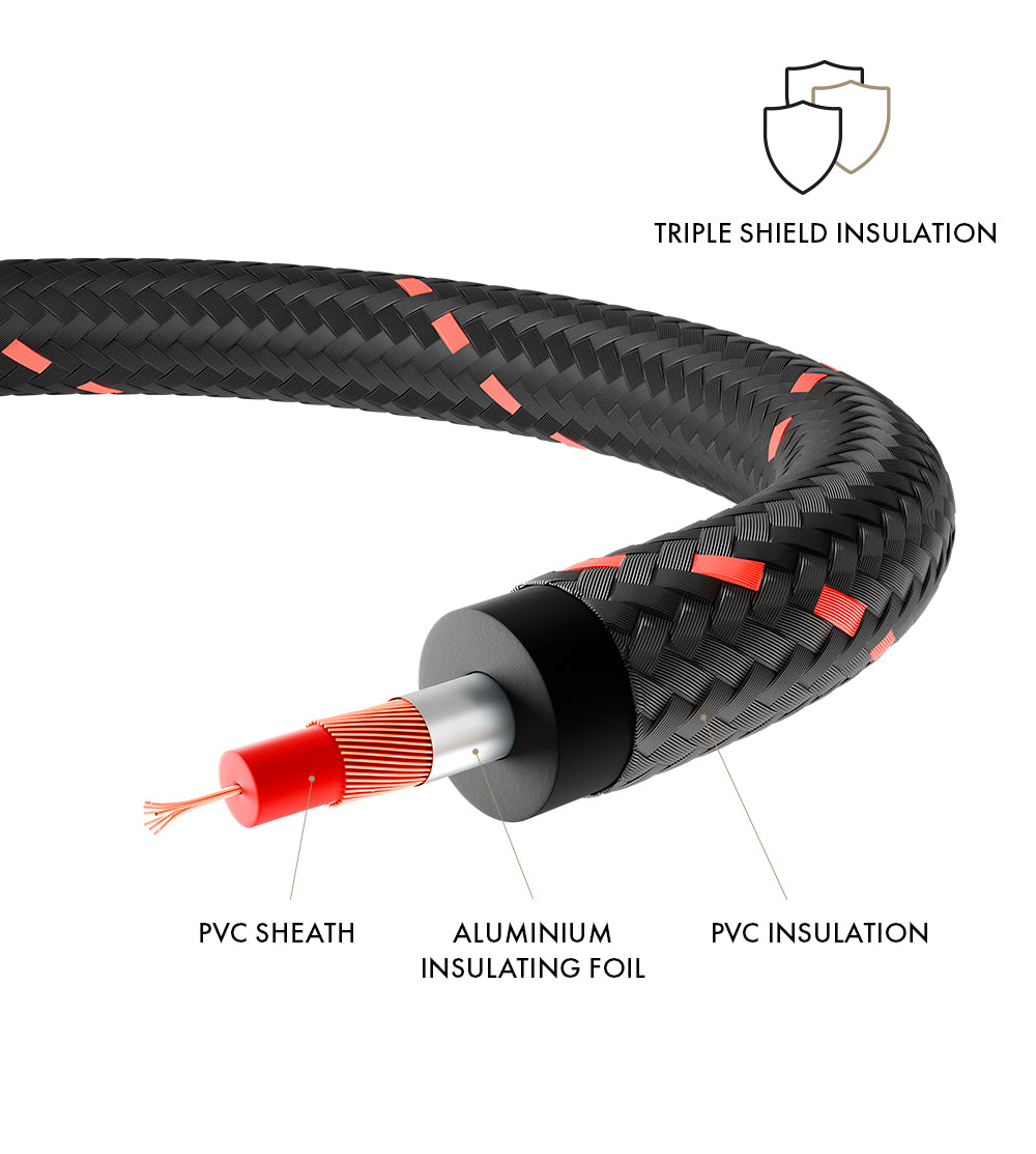 The insulation combines several layers of PVC, aluminium foil and a braided textile sheath. This structure effectively protects the signal from electromagnetic interference and parasitic vibrations, ensuring clean transmission in all listening conditions.